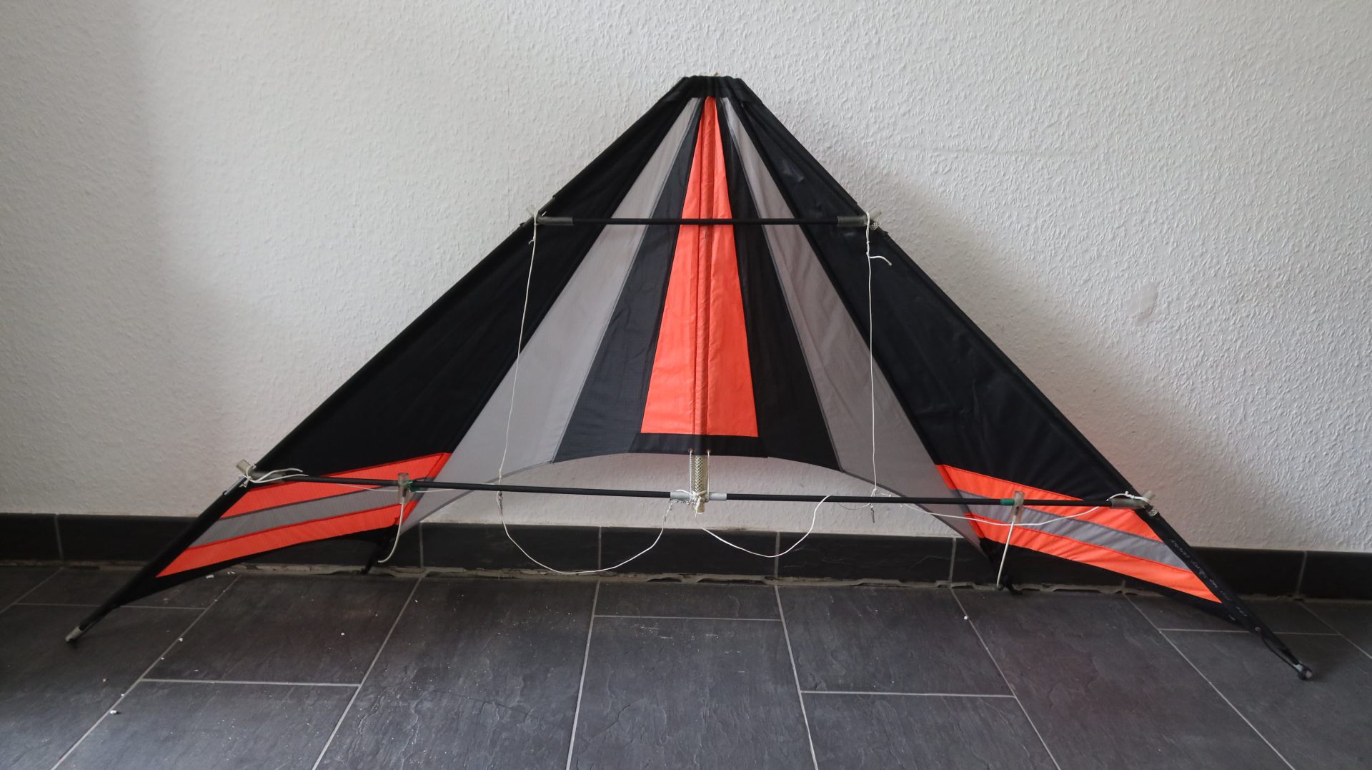 Dieser handgefertigte Lenkdrachen aus der Werkstatt von Andreas Radke aus Kiel stammt aus dem März 1991 und ist ein eindrucksvolles Beispiel für die Kunst des individuellen Drachenbaus. Der in markanten Farben gehaltene Delta-Lenkdrachen kombiniert prägnante Farbakzente in Schwarz, Grau und Orange, die nicht nur ästhetisch ansprechend sind, sondern auch eine hervorragende Sichtbarkeit am Himmel gewährleisten. Die robuste Gestänge Konstruktion und die sorgfältig gearbeitete Bespannung aus hochwertigem Spinnaker-Nylon unterstreichen die handwerkliche Qualität dieses Unikats. Besonders hervorzuheben ist die handschriftliche Signatur des Drachenbauers auf der Segelleitkante, die das Modell eindeutig als handgefertigtes Einzelstück aus dem Jahr 1991 kennzeichnet. Dieser Drachen eignet sich sowohl für Fluganfänger als auch für erfahrene Drachenflieger und bietet durch seine präzise Konstruktion exzellente Flugeigenschaften, die enge Wendemanöver und kontrollierte Flugbahnen ermöglichen. Ein Sammlerstück für Liebhaber klassischer Lenkdrachen und ein authentisches Zeugnis der deutschen Drachenbaukunst der frühen 1990er Jahre.