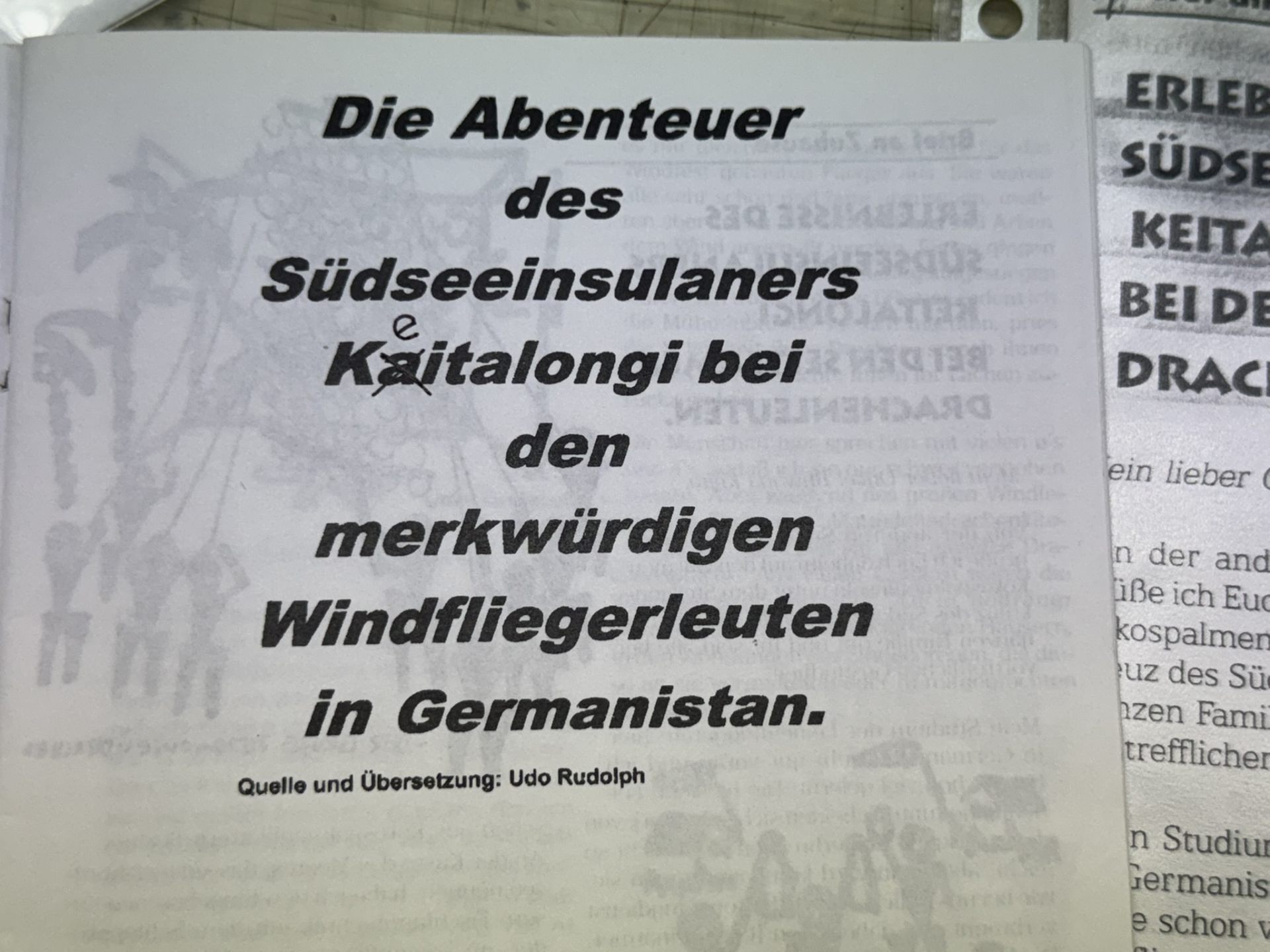Dieses ist ein absolut einmaliges Konvolut aus dem Nachlass des fiktiven südseeischen Drachenbauers Keitalongi, dessen handgefertigte Naturfaserdrachen Ende der 1990er Jahre überraschende Erfolge bei den Deutschen Drachenmeisterschaften erzielten. Keitalongi, bekannt für seine filigrane und zugleich robuste Bauweise, verwendete traditionelle Materialien wie Pandanusblätter, Bast, Kokosfasern und Pfauenfedern, die in meisterhafter Technik verflochten wurden. Seine Drachen wurden aufgrund der weichen Linien, der unverwechselbaren Ornamentik und der beeindruckenden Flugstabilität geschätzt. Da Keitalongi selbst nicht nach Deutschland reisen konnte, präsentierte sein langjähriger Freund Udo Rudolph aus Göttingen die Drachen stellvertretend. Mit ihnen erreichte Keitalongi damals einen 2. Platz sowie einen 3. Platz – eine bemerkenswerte Anerkennung seiner außergewöhnlichen Handwerkskunst. Zum Konvolut gehören: Mehrere originale, handgefertigte Drachen aus Naturmaterialien, Begleitende Schriftstücke, Notizen und Erläuterungen des Drachenbauers. Hintergrunddokumente aus der Zeit der Wettbewerbe, Seltene Zeugnisse traditioneller Drachenbaukunst aus dem pazifischen Kulturraum. Die Besonderheit des Konvolut ist nicht nur ein ästhetischer Schatz, sondern auch ein Stück kultureller Erzähltradition: die Verbindung einer südseeischen Drachenbaukunst mit der europäischen Wettbewerbsszene. Selten finden sich Objekte, die gleichzeitig handwerklich, kulturell und erzählerisch so reich sind. Für Sammler, Kulturbegeisterte oder Liebhaber außergewöhnlicher Objekte bietet dieses Set eine einmalige Gelegenheit, ein unverwechselbares und atmosphärisches Stück Drachenbaugeschichte zu erwerben.