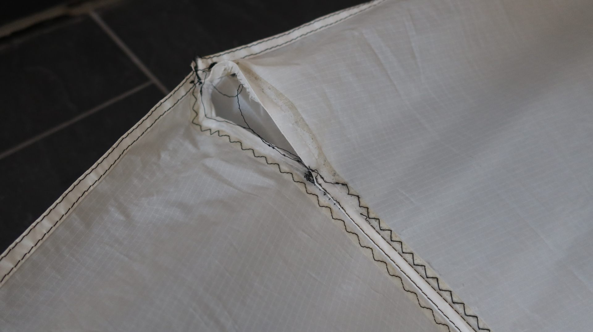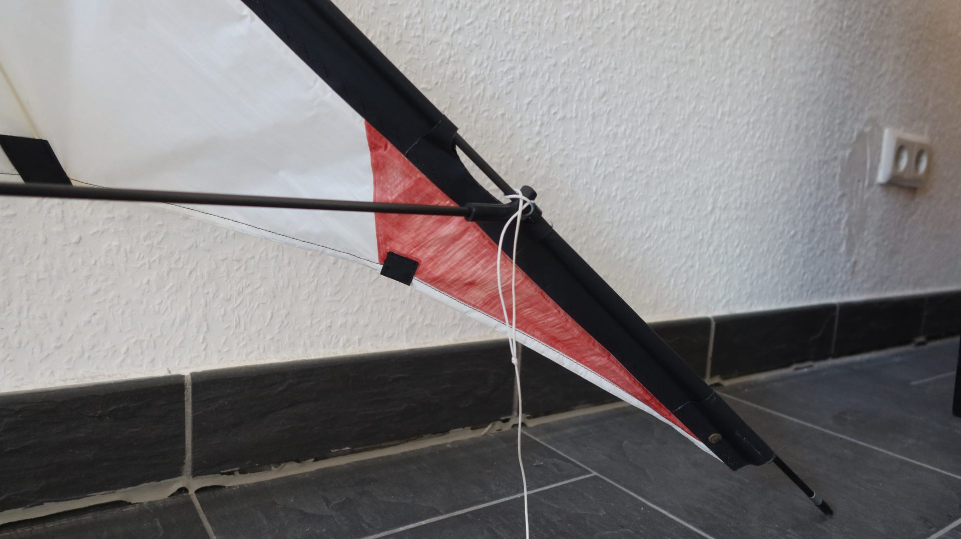 Bemerkungen: Segel unten in der Mitte ist die Naht offen, Segelspitze rechts ist rot individualisiert (Filzstift?)