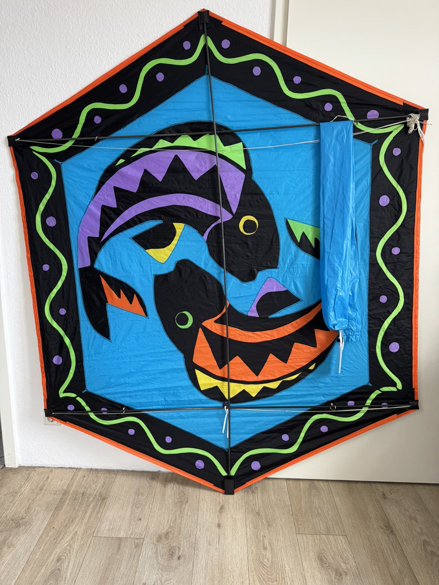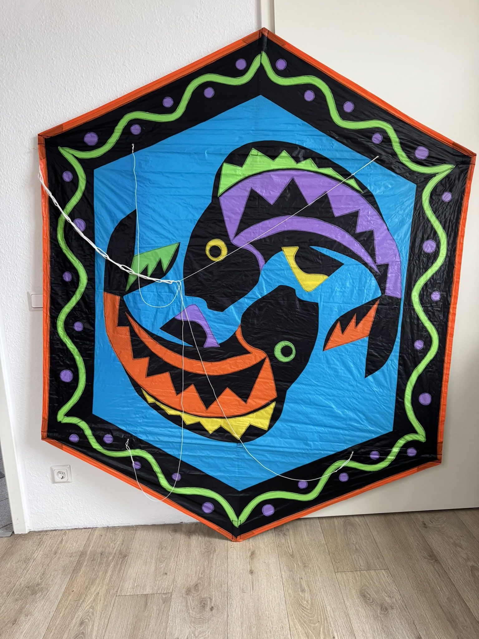 Dieser beeindruckende Giant Rokkaku der renommierten US-Marke Premier Kites ist ein hochwertiger Großdrachen, der in dieser Qualität nur selten angeboten wird. Mit seinen stattlichen Maßen von 203 cm Höhe und 163 cm Breite ist er ein wahrer Blickfang, sowohl am Boden als auch am Himmel. Das Segel besteht aus fein verarbeitetem Spinnaker-Tuch, dessen aufwendige und farbstarke Applikationen ein dynamisches Motiv in brillanten Farben zeigen. Die Rahmenkonstruktion aus 6-mm- und 8-mm-Kohlefaserstangen sorgt für hervorragende Flugeigenschaften bei gleichzeitig geringem Gewicht. Der Drachen befindet sich in einem absoluten Neuzustand und wurde noch nie geflogen – ideal für Sammler, Drachenliebhaber oder alle, die ein außergewöhnliches Einzelstück suchen. Premier Kites ist bekannt für langlebige, präzise gearbeitete Modelle, die sowohl funktional als auch künstlerisch überzeugen. Der Rokkaku-Drachen stammt ursprünglich aus Japan, insbesondere aus der Region Sanjo in der Präfektur Niigata. Dort entwickelte sich der sogenannte Sanjo Rokkaku bereits im 17. Jahrhundert zu einem festen Bestandteil der lokalen Kultur. Charakteristisch ist seine sechseckige Form, die Stabilität mit beeindruckender Steigkraft verbindet. Traditionell wurden die Drachen aus Bambus und Washi-Papier gefertigt und reich verziert. Besonders bekannt wurde der Sanjo Rokkaku durch die Rokkaku-Kämpfe, bei denen mehrere Drachen gleichzeitig steigen gelassen werden und die Piloten versuchen, die Leinen der anderen Teilnehmer zu durchtrennen oder sie aus dem Gleichgewicht zu bringen. Diese Wettbewerbe werden bis heute ausgetragen und zeigen die außergewöhnliche Manövrierfähigkeit und Robustheit dieser Drachenform. Der hier angebotene Giant Rokkaku folgt dieser traditionsreichen Bauweise, interpretiert sie jedoch mit modernen Materialien und künstlerischen Designs neu – ein Stück Drachenkultur mit Geschichte und modernem Flair zugleich.