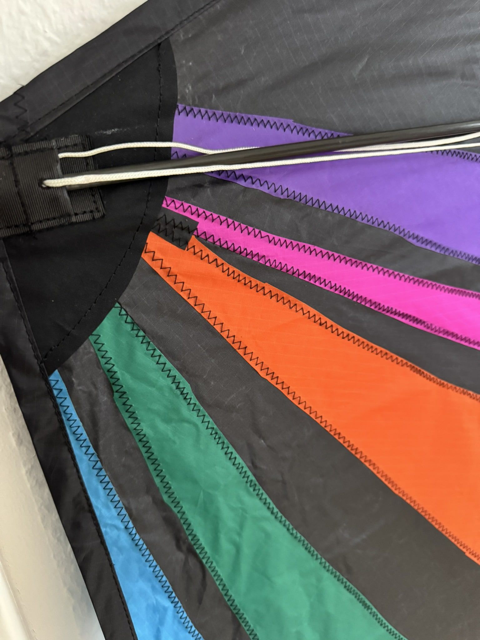 Dieser beeindruckende Giant Rokkaku der renommierten US-Marke Premier Kites ist ein hochwertiger Großdrachen, der in dieser Qualität nur selten angeboten wird. Mit seinen stattlichen Maßen von 203 cm Höhe und 163 cm Breite ist er ein wahrer Blickfang, sowohl am Boden als auch am Himmel. Das Segel besteht aus fein verarbeitetem Spinnaker-Tuch, dessen aufwendige und farbstarke Applikationen ein dynamisches Motiv in brillanten Farben zeigen. Die Rahmenkonstruktion aus 6-mm- und 8-mm-Kohlefaserstangen sorgt für hervorragende Flugeigenschaften bei gleichzeitig geringem Gewicht. Der Drachen befindet sich in einem absoluten Neuzustand und wurde noch nie geflogen – ideal für Sammler, Drachenliebhaber oder alle, die ein außergewöhnliches Einzelstück suchen. Premier Kites ist bekannt für langlebige, präzise gearbeitete Modelle, die sowohl funktional als auch künstlerisch überzeugen. Der Rokkaku-Drachen stammt ursprünglich aus Japan, insbesondere aus der Region Sanjo in der Präfektur Niigata. Dort entwickelte sich der sogenannte Sanjo Rokkaku bereits im 17. Jahrhundert zu einem festen Bestandteil der lokalen Kultur. Charakteristisch ist seine sechseckige Form, die Stabilität mit beeindruckender Steigkraft verbindet. Traditionell wurden die Drachen aus Bambus und Washi-Papier gefertigt und reich verziert. Besonders bekannt wurde der Sanjo Rokkaku durch die Rokkaku-Kämpfe, bei denen mehrere Drachen gleichzeitig steigen gelassen werden und die Piloten versuchen, die Leinen der anderen Teilnehmer zu durchtrennen oder sie aus dem Gleichgewicht zu bringen. Diese Wettbewerbe werden bis heute ausgetragen und zeigen die außergewöhnliche Manövrierfähigkeit und Robustheit dieser Drachenform. Der hier angebotene Giant Rokkaku folgt dieser traditionsreichen Bauweise, interpretiert sie jedoch mit modernen Materialien und künstlerischen Designs neu – ein Stück Drachenkultur mit Geschichte und modernem Flair zugleich.