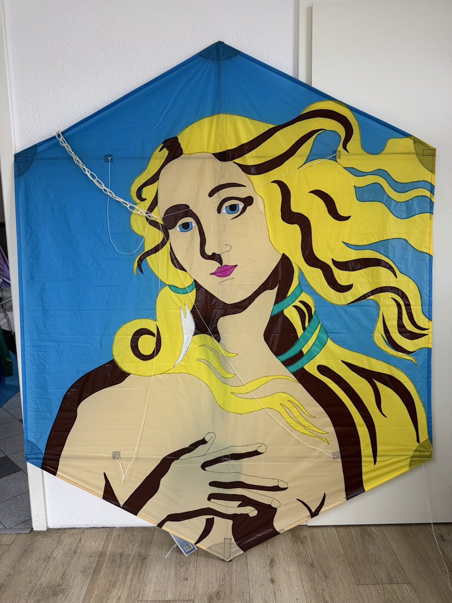 Dieser beeindruckende Giant Rokkaku der renommierten US-Marke Premier Kites ist ein hochwertiger Großdrachen, der in dieser Qualität nur selten angeboten wird. Mit seinen stattlichen Maßen von 203 cm Höhe und 163 cm Breite ist er ein wahrer Blickfang, sowohl am Boden als auch am Himmel. Das Segel besteht aus fein verarbeitetem Spinnaker-Tuch, dessen aufwendige und farbstarke Applikationen ein dynamisches Motiv in brillanten Farben zeigen. Die Rahmenkonstruktion aus 6-mm- und 8-mm-Kohlefaserstangen sorgt für hervorragende Flugeigenschaften bei gleichzeitig geringem Gewicht. Der Drachen befindet sich in einem absoluten Neuzustand und wurde noch nie geflogen – ideal für Sammler, Drachenliebhaber oder alle, die ein außergewöhnliches Einzelstück suchen. Premier Kites ist bekannt für langlebige, präzise gearbeitete Modelle, die sowohl funktional als auch künstlerisch überzeugen. Der Rokkaku-Drachen stammt ursprünglich aus Japan, insbesondere aus der Region Sanjo in der Präfektur Niigata. Dort entwickelte sich der sogenannte Sanjo Rokkaku bereits im 17. Jahrhundert zu einem festen Bestandteil der lokalen Kultur. Charakteristisch ist seine sechseckige Form, die Stabilität mit beeindruckender Steigkraft verbindet. Traditionell wurden die Drachen aus Bambus und Washi-Papier gefertigt und reich verziert. Besonders bekannt wurde der Sanjo Rokkaku durch die Rokkaku-Kämpfe, bei denen mehrere Drachen gleichzeitig steigen gelassen werden und die Piloten versuchen, die Leinen der anderen Teilnehmer zu durchtrennen oder sie aus dem Gleichgewicht zu bringen. Diese Wettbewerbe werden bis heute ausgetragen und zeigen die außergewöhnliche Manövrierfähigkeit und Robustheit dieser Drachenform. Der hier angebotene Giant Rokkaku folgt dieser traditionsreichen Bauweise, interpretiert sie jedoch mit modernen Materialien und künstlerischen Designs neu – ein Stück Drachenkultur mit Geschichte und modernem Flair zugleich.