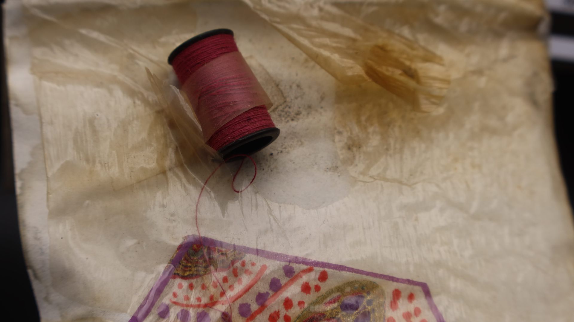 Dieser Miniaturdrachen ist Teil der Serie The Itsy Bitsy Kite des Herstellers Kite Sails aus Colorado Springs. Das Objekt misst 80 mm x 80 mm und ist aus dünnem, leicht transparentem Papier oder Kunststofffolie gefertigt. Die Vorderseite ziert ein farbenfrohes Schmetterlingsmotiv, das in einem sechseckigen Rahmen gestaltet ist. Die Farbgebung besteht überwiegend aus Rot-, Violett- und Goldtönen mit dekorativen Punkten im Hintergrund. Der Drachen befindet sich in der originalen Verkaufsverpackung, die neben dem Drachen selbst auch eine kleine Spule mit rotem Nylongarn sowie einen rot glänzenden Plastikschweif enthält. Auf der Verpackung sind humorvoll formulierte Anweisungen zum Drachensteigen abgedruckt, die den unkomplizierten und spielerischen Charakter des Produkts unterstreichen. Der Werbeslogan lautet: „Easy to fly! Fun indoors or outdoors! Great for all ages!“ Das Objekt ist ein typisches Beispiel für sogenannte Taschen- oder Fingerdrachen, die in den 1980er- und 1990er-Jahren als Mitbringsel oder humorvolles Geschenk beliebt waren. Trotz leichter Alterungsspuren wie Verfärbungen und Knicke weist der Drachen einen guten Erhaltungszustand auf. Er dokumentiert eine verspielte Facette der populären Freizeitkultur und Miniaturspielzeuggestaltung jener Zeit.