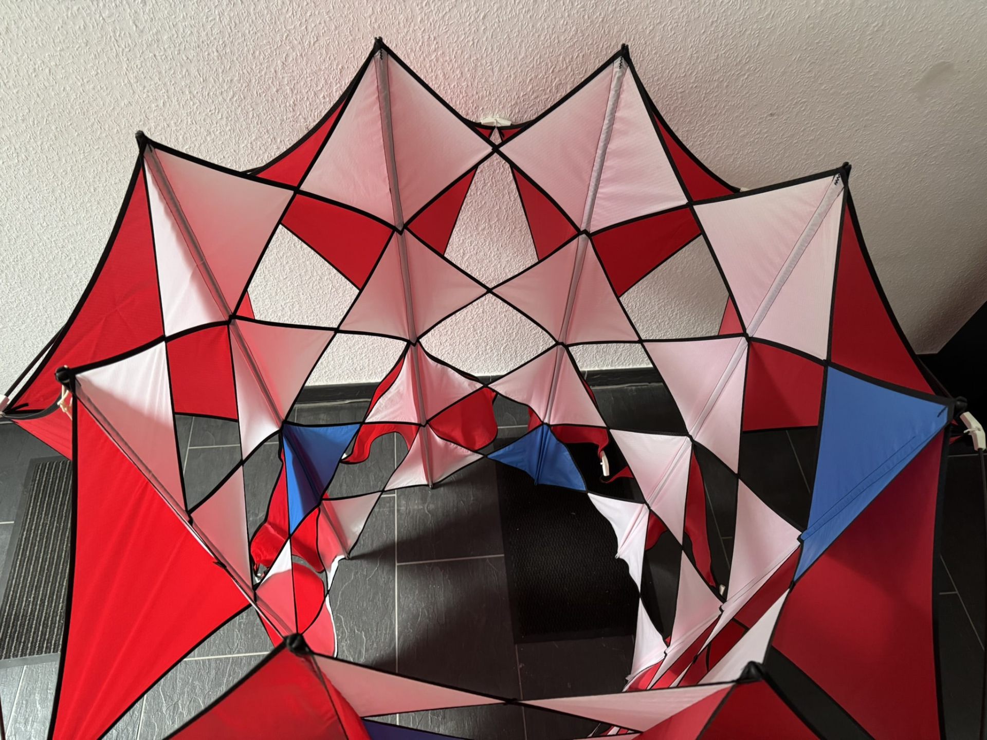 Ein wahres Meisterwerk der Drachenbaukunst. Dieser exklusive Roto Kastendrachen besticht durch seine außergewöhnliche Konstruktion und seine beeindruckende visuelle Präsenz am Himmel. Gefertigt mit einem robusten 6 mm CFK Gestänge, bietet dieser Drachen eine unschlagbare Stabilität und Widerstandsfähigkeit selbst bei starkem Wind. Die geometrische Struktur dieses Unikats besteht aus perfekt abgestimmten, dreieckigen und Segmenten, die in einem präzise ausbalancierten, mehrstufigen Aufbau angeordnet sind. Die durchdachte Gestaltung sorgt nicht nur für einen stabilen Flug, sondern auch für ein faszinierendes optisches Spiel aus Licht und Schatten, das am Himmel einzigartige Muster und Formen erzeugt. Dank der präzisen CFK-Konstruktion bleibt der Roto Kastendrachen selbst bei Böen formstabil und zeigt ein unvergleichlich ruhiges Flugverhalten. Ob als imposanter Blickfang bei Drachenfestivals oder als hochwertiges Sammlerstück – dieser Drachen überzeugt durch höchste Verarbeitungsqualität und ein unverwechselbares Design.