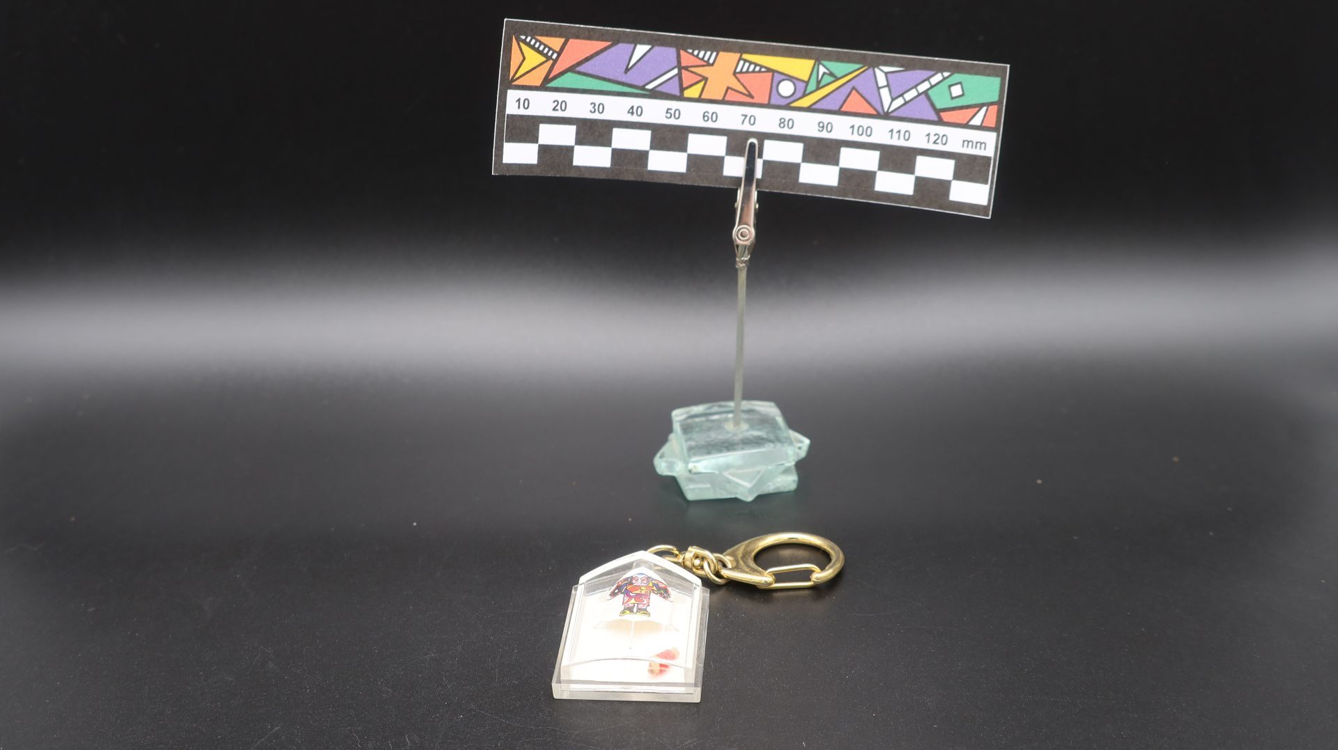 Miniatur Drachen mit Spule im Kuststoffgehäuse als Schlüsselanhänger, ca. 2 x 3 cm