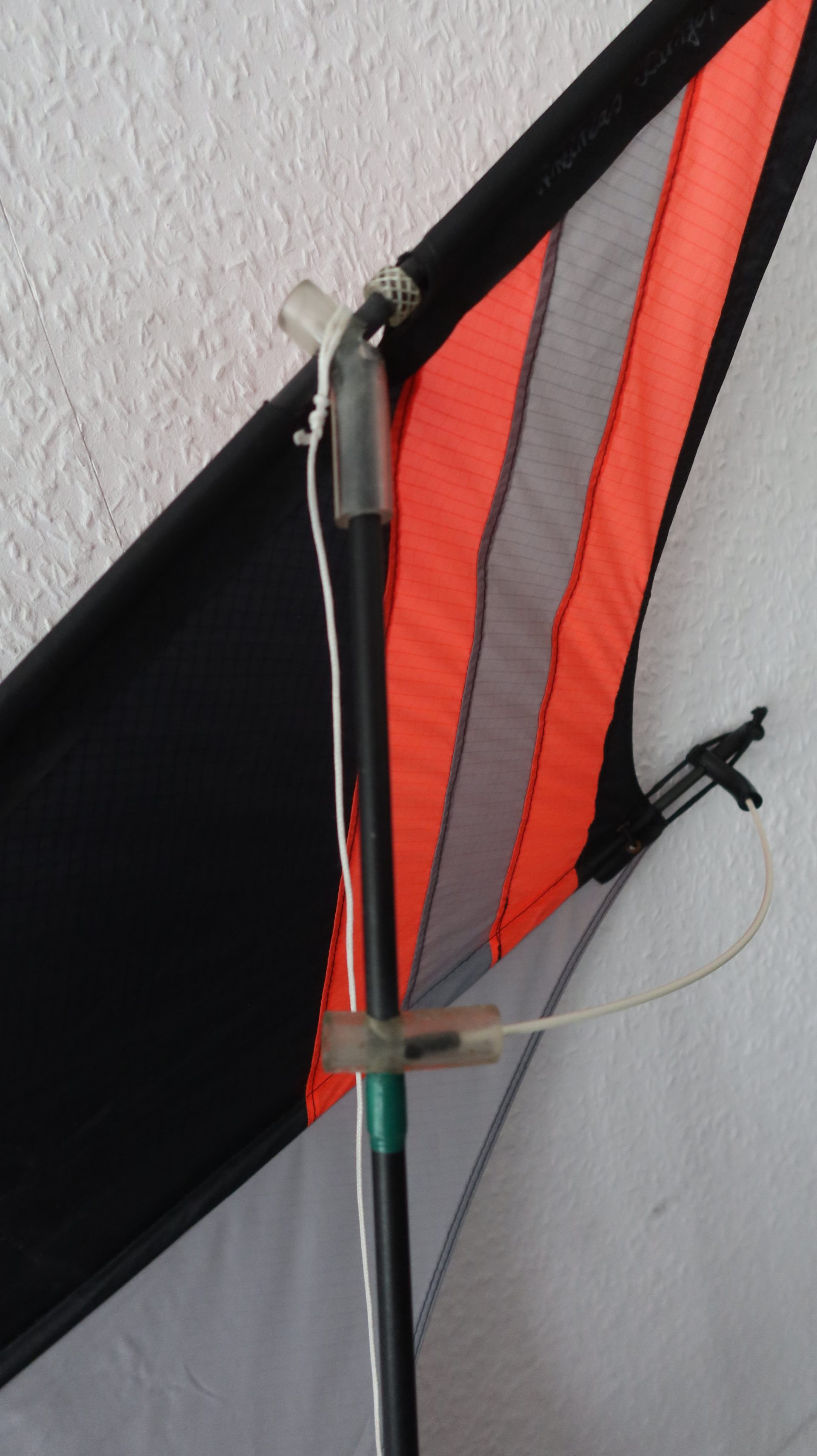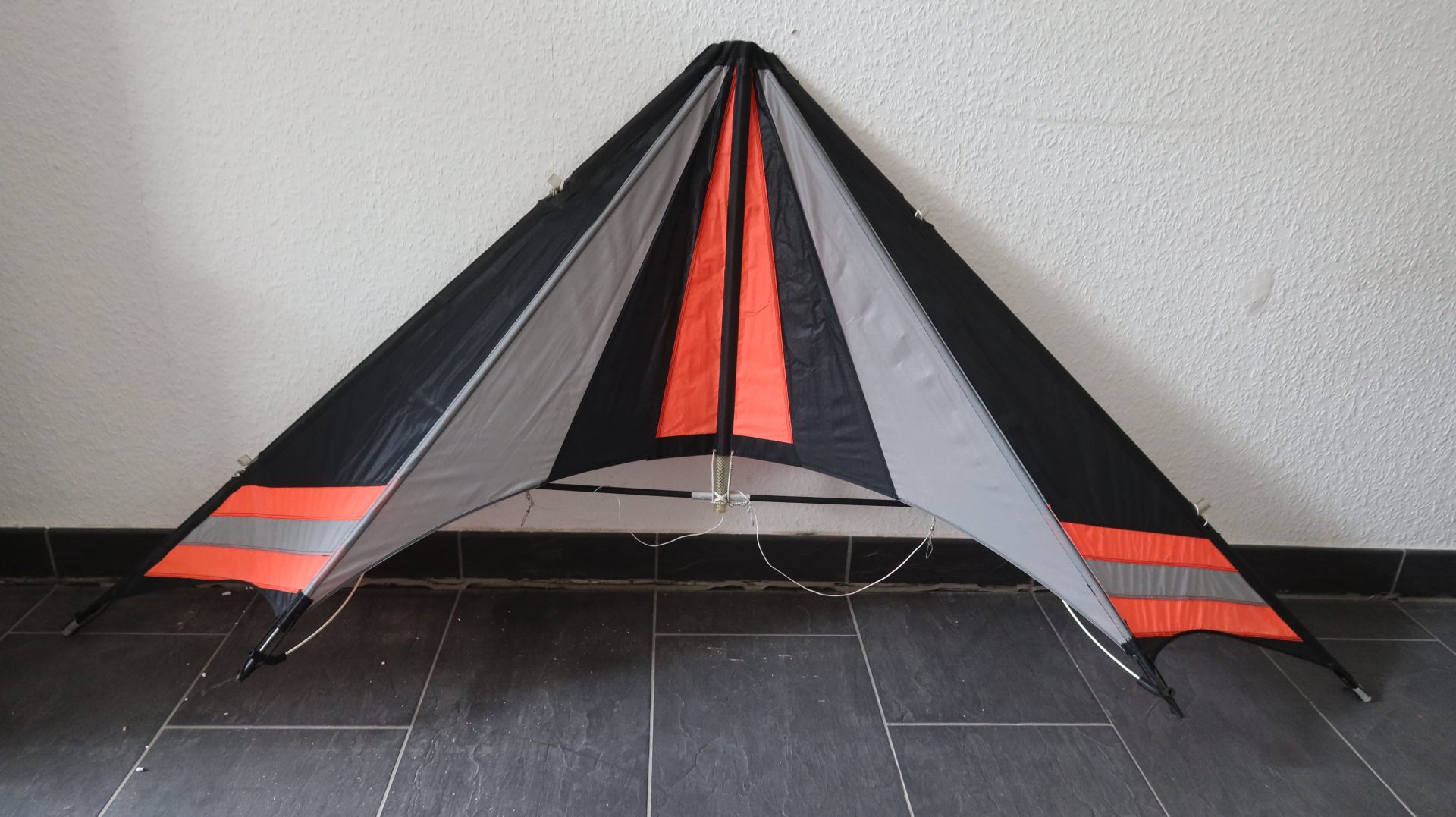 Dieser handgefertigte Lenkdrachen aus der Werkstatt von Andreas Radke aus Kiel stammt aus dem März 1991 und ist ein eindrucksvolles Beispiel für die Kunst des individuellen Drachenbaus. Der in markanten Farben gehaltene Delta-Lenkdrachen kombiniert prägnante Farbakzente in Schwarz, Grau und Orange, die nicht nur ästhetisch ansprechend sind, sondern auch eine hervorragende Sichtbarkeit am Himmel gewährleisten. Die robuste Gestänge Konstruktion und die sorgfältig gearbeitete Bespannung aus hochwertigem Spinnaker-Nylon unterstreichen die handwerkliche Qualität dieses Unikats. Besonders hervorzuheben ist die handschriftliche Signatur des Drachenbauers auf der Segelleitkante, die das Modell eindeutig als handgefertigtes Einzelstück aus dem Jahr 1991 kennzeichnet. Dieser Drachen eignet sich sowohl für Fluganfänger als auch für erfahrene Drachenflieger und bietet durch seine präzise Konstruktion exzellente Flugeigenschaften, die enge Wendemanöver und kontrollierte Flugbahnen ermöglichen. Ein Sammlerstück für Liebhaber klassischer Lenkdrachen und ein authentisches Zeugnis der deutschen Drachenbaukunst der frühen 1990er Jahre.