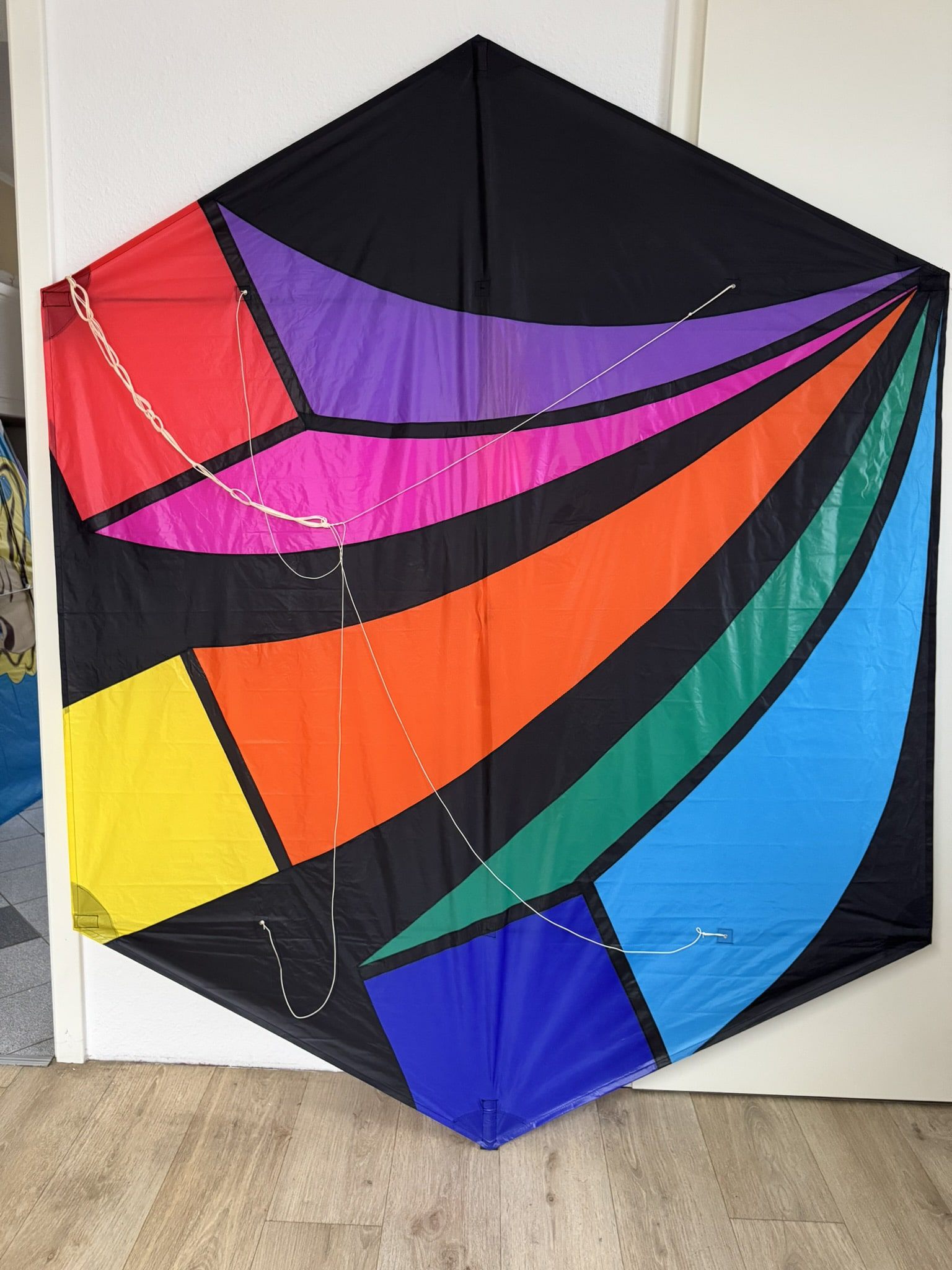 Dieser beeindruckende Giant Rokkaku der renommierten US-Marke Premier Kites ist ein hochwertiger Großdrachen, der in dieser Qualität nur selten angeboten wird. Mit seinen stattlichen Maßen von 203 cm Höhe und 163 cm Breite ist er ein wahrer Blickfang, sowohl am Boden als auch am Himmel. Das Segel besteht aus fein verarbeitetem Spinnaker-Tuch, dessen aufwendige und farbstarke Applikationen ein dynamisches Motiv in brillanten Farben zeigen. Die Rahmenkonstruktion aus 6-mm- und 8-mm-Kohlefaserstangen sorgt für hervorragende Flugeigenschaften bei gleichzeitig geringem Gewicht. Der Drachen befindet sich in einem absoluten Neuzustand und wurde noch nie geflogen – ideal für Sammler, Drachenliebhaber oder alle, die ein außergewöhnliches Einzelstück suchen. Premier Kites ist bekannt für langlebige, präzise gearbeitete Modelle, die sowohl funktional als auch künstlerisch überzeugen. Der Rokkaku-Drachen stammt ursprünglich aus Japan, insbesondere aus der Region Sanjo in der Präfektur Niigata. Dort entwickelte sich der sogenannte Sanjo Rokkaku bereits im 17. Jahrhundert zu einem festen Bestandteil der lokalen Kultur. Charakteristisch ist seine sechseckige Form, die Stabilität mit beeindruckender Steigkraft verbindet. Traditionell wurden die Drachen aus Bambus und Washi-Papier gefertigt und reich verziert. Besonders bekannt wurde der Sanjo Rokkaku durch die Rokkaku-Kämpfe, bei denen mehrere Drachen gleichzeitig steigen gelassen werden und die Piloten versuchen, die Leinen der anderen Teilnehmer zu durchtrennen oder sie aus dem Gleichgewicht zu bringen. Diese Wettbewerbe werden bis heute ausgetragen und zeigen die außergewöhnliche Manövrierfähigkeit und Robustheit dieser Drachenform. Der hier angebotene Giant Rokkaku folgt dieser traditionsreichen Bauweise, interpretiert sie jedoch mit modernen Materialien und künstlerischen Designs neu – ein Stück Drachenkultur mit Geschichte und modernem Flair zugleich.