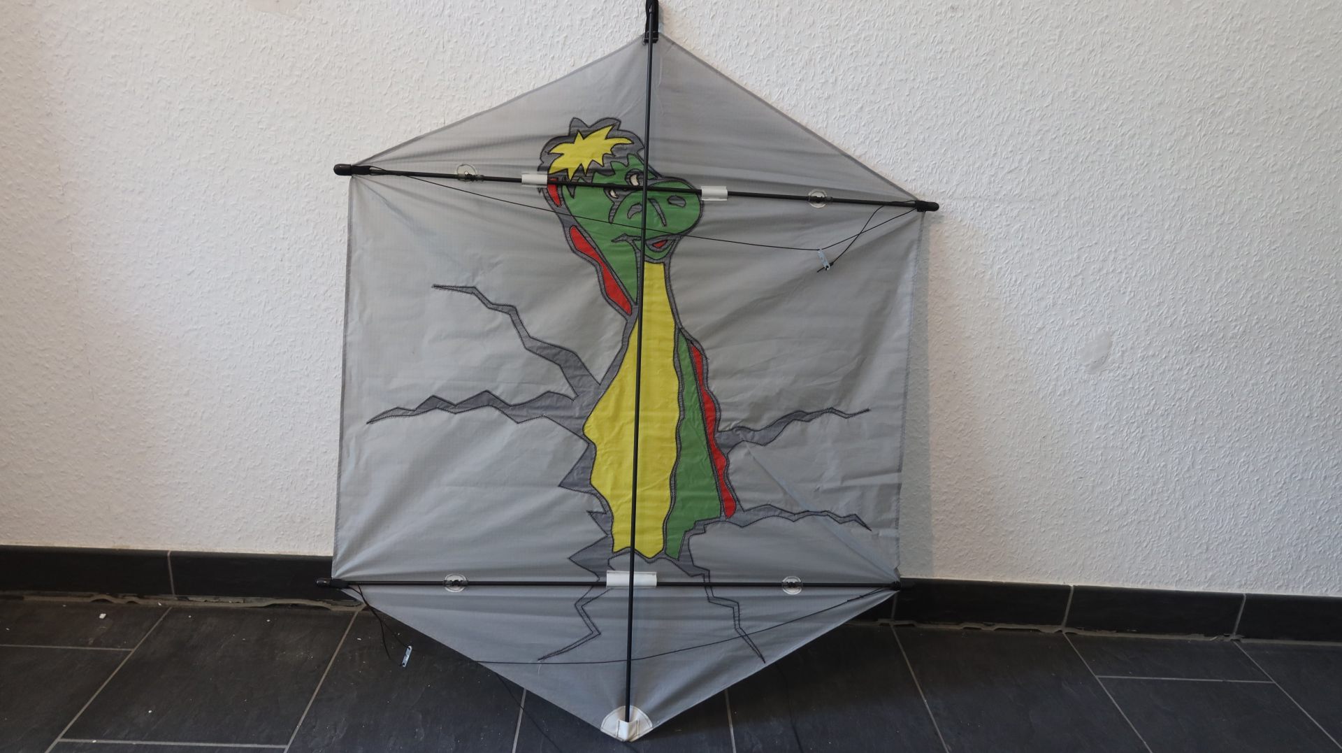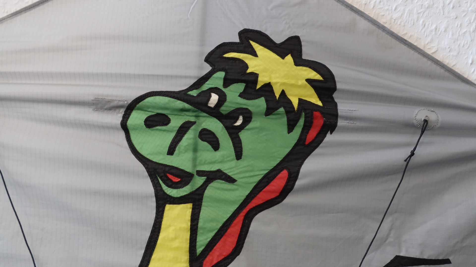 Dieser hochwertige Sanjo-Rokkaku ist ein echtes Unikat und besticht durch sein aufwendig gearbeitetes Design. Die großflächige Applikation eines fröhlich-lächelnden Comic-Drachen, der scheinbar durch das Drachentuch bricht, macht ihn zu einem absoluten Blickfang am Himmel. Die sorgfältige Verarbeitung der verschiedenen Farbschichten und die präzisen Nähte zeugen von handwerklichem Können und Liebe zum Detail. Mit seiner klassischen Rokkaku-Form und der robusten Bauweise eignet sich dieser Drachen nicht nur als eindrucksvoller Show-Drachen, sondern auch ideal für den Einsatz bei traditionellen Rokkaku-Kämpfen. Die fein justierbare Verspannung erlaubt präzises Steuern und stabiles Flugverhalten – auch bei wechselnden Windverhältnissen. Ein Muss für Liebhaber außergewöhnlicher Einzelstücke und Sammler traditioneller Kampfdrachen. Ob am Strand, auf dem Drachenfest oder im Wettbewerb: Dieser Rokkaku sorgt garantiert für Aufmerksamkeit und Freude.